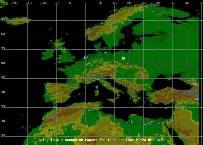 Ova opcija prikazuje veličinu tanjira u pojedinim oblastima koja je potrebna za dobar prijem,